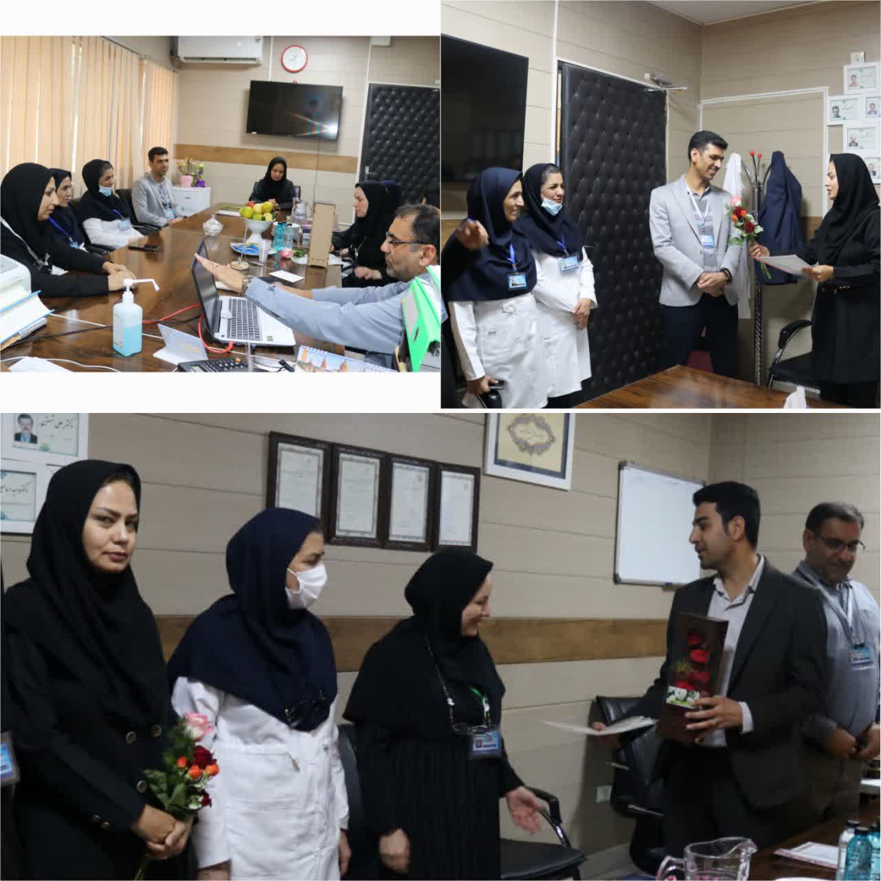 سرپرست دانشکده پیراپزشکی داراب، به همراه جمعی از کارکنان، در بیمارستان امام حسن مجتبی(ع) حضور یافتند و از زحمات بیوقفه پرستاران این بیمارستان تقدیر کردند.